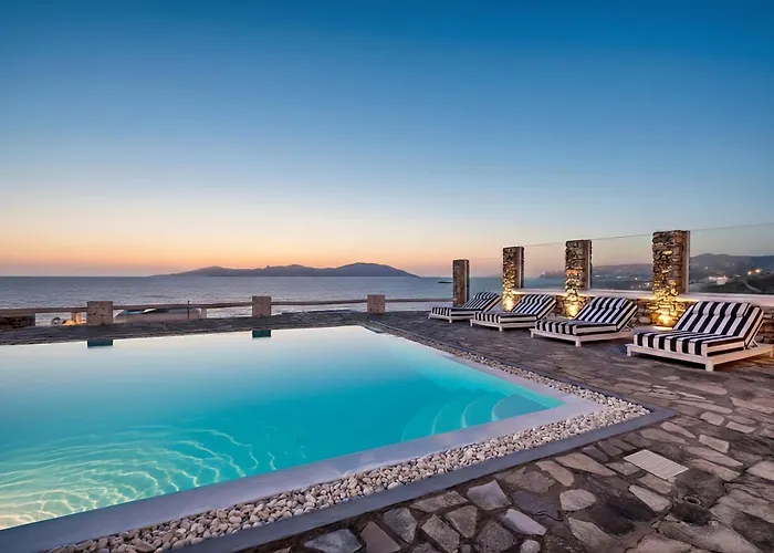 De 4-slaapkamer Michaelangelo Villa Mykonos Town heeft een zwembad voor de ontspanning van de gasten en ligt op 4 km van het Delos-eiland. De villa heeft een terras en ligt op 10 minuten met de auto vanaf het Agios Stefanos-strand.